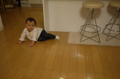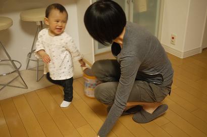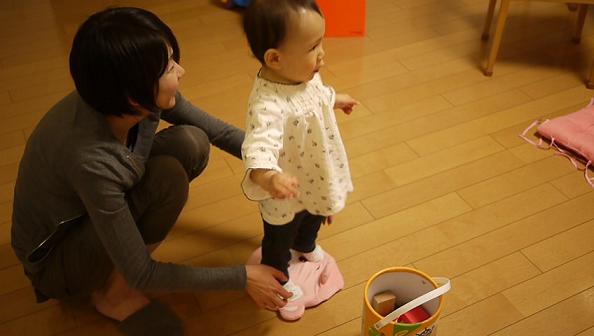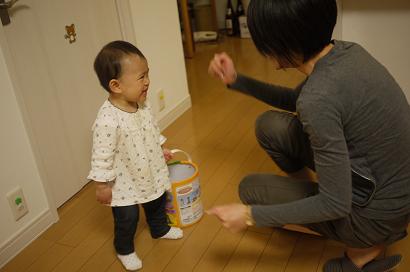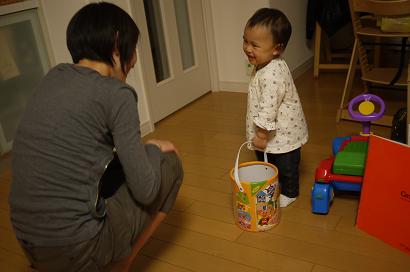 積み木の箱を引きずりながら、行ったりきたり。
