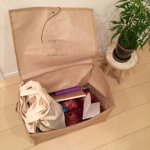 選んだのが、こちらの畳めるタイプの麻の収納BOXです。