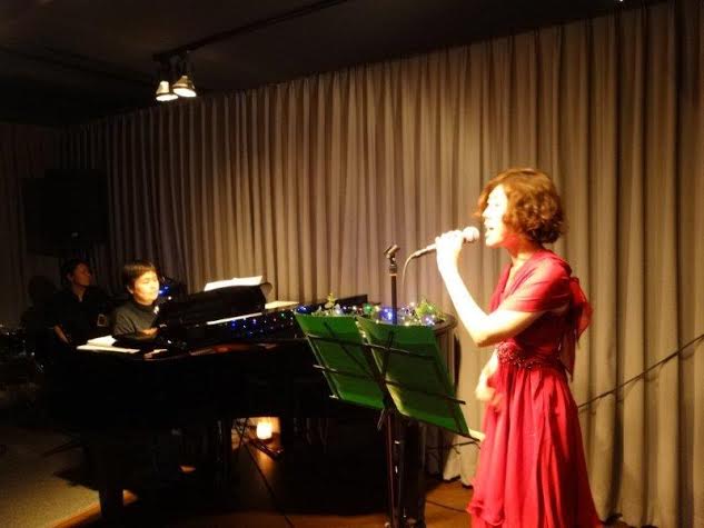 赤のドレスでミドルレングスのふんわりとしたパーマのasukaさんは、aiさんの歌う、原キーより2度低い渋めの『サクラ色』にノックアウトされたようで、泣いていた。