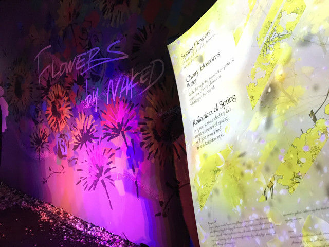 毎年この時期に日本橋で開催される、Flowers by NAKED へ。プロジェクションマッピングの空間を体験することができます。花とアロマとプロジェクションマッピングに音。五感が何しろ刺激されまくる、異次元空間です。初めて行ったのが3年間で、初めてのときはものすごく感動して、2回も行ってしまいました。しかし、何度も体験すると人間驚きも薄れるものですが、昨年よりまたテクノロジーの進化によって、ものすごいUPGRADEされていて驚きました! と、最初のほうは良かったのですが…。